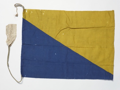 About this objectSmall rectangular flag. Yellow and blue bisected diagonally. New Zealand Field Pay Office flag used at Gallipoli.