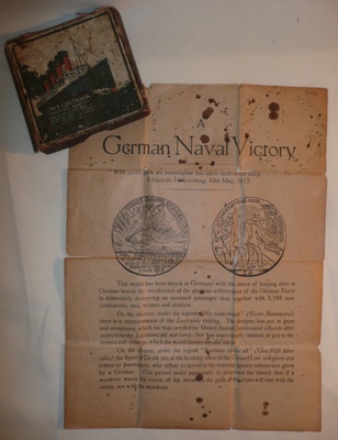 About this objectThe original Lusitania medals were designed by German medalist Karl Goetz in response to the sinking of the British ocean liner by a German U-boat on May 7 1915. The medal was later copied and mass produced by the British and used as World War One propaganda.
